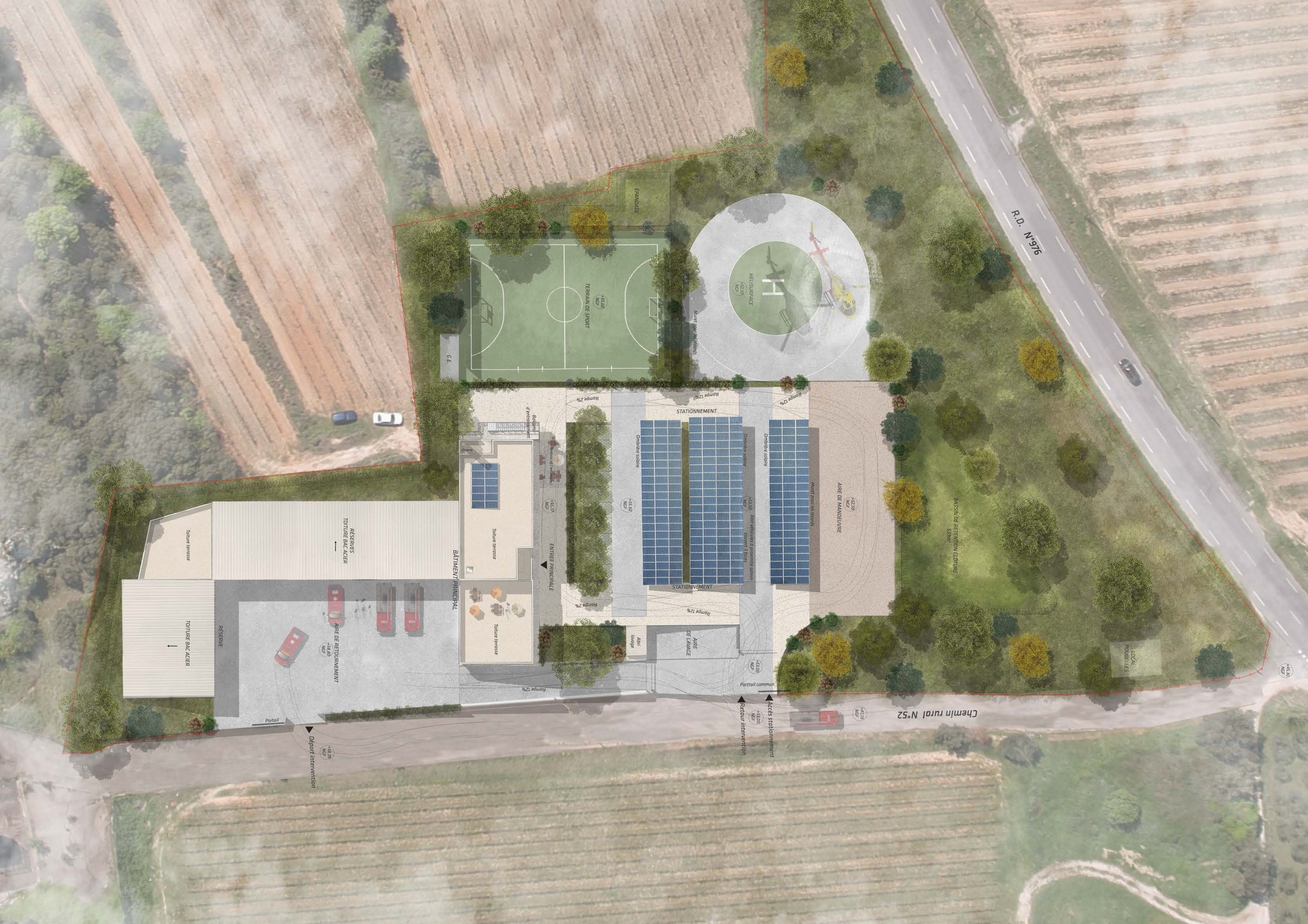 Implanté route de Nîmes, au lieu-dit "La Saumière", ce nouveau centre de secours offrira aux sapeurs-pompiers un outil moderne, fonctionnel et adapté aux besoins opérationnels.